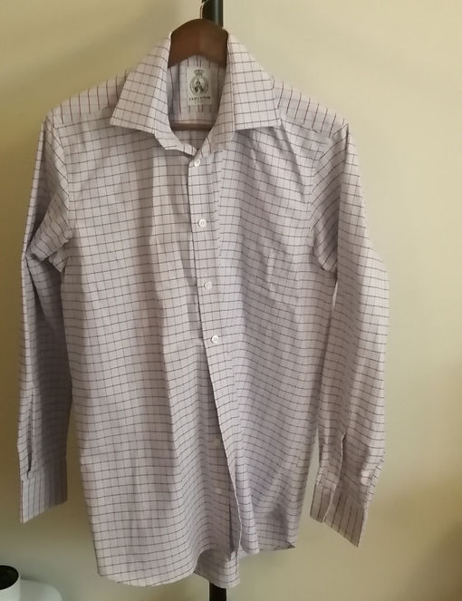 White shirt with red grid check